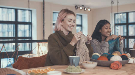 Smiling young girls at knitting