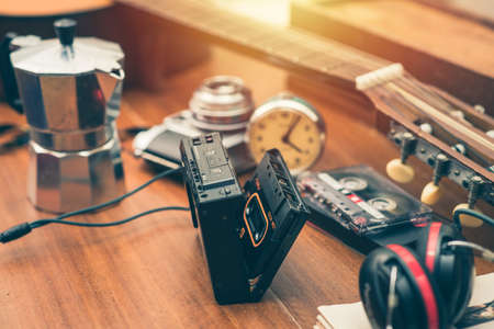 The vintage audio cassette tape, analog magnetic tape format for audio recording and playback.
