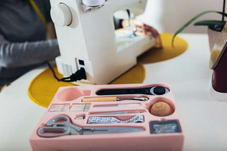 Handicraft is a fascinating hobby. Sewing art at home concept.