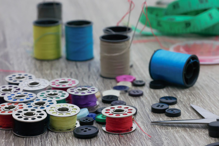 Garment accessories and Clothing Repairing Equipment. Select focus shallow depth of field and blurred background