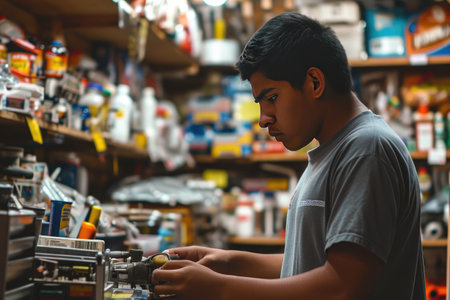 Young man working in hardware store.