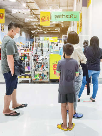 KANCHANABURI, THAILAND - MAY 30,2020: Unidentified Customers wearing face mask protection in prevention for Corona Virus (Covid -2019) and shopping at Robinson department store on May 30,2020