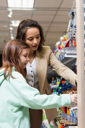 2 women buying stationery in supermarket