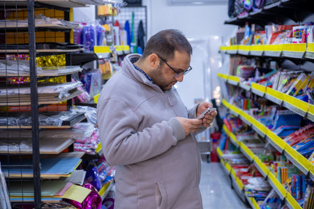 MOSCOW, RUSSIA - MARCH 03, 2015. A man makes a purchase of Leroy Merlin Store. Leroy Merlin is a French home-improvement and gardening retailer serving thirteen countries