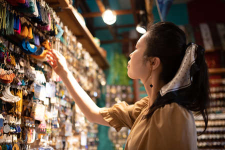 Women choosing accessories at the store