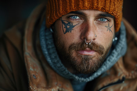 Young informal man with piercing and tattoo on his face
