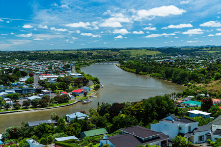 The cityscape and the Whanganui River from Dury Hill in Whanganui, New Zealand