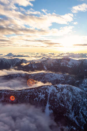 Aerial view of a beautiful Canadian Landscape during a winter sunset. Taken north of Vancouver, British Columbia, Canada.