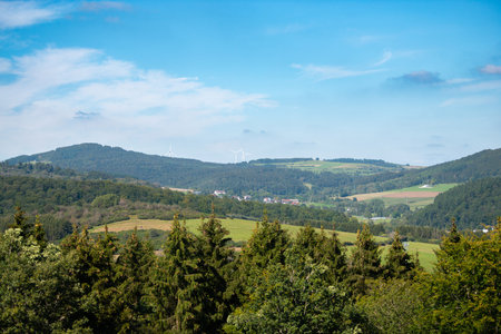 Stunning autumn scenery of hills of Westerwald, Rhineland-Palatinate, Germany. Top view from Hachenburg castle