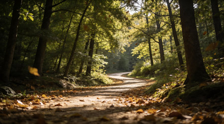 Shaded roads in autumn forests