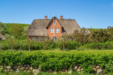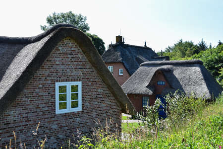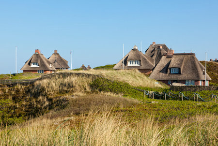Thatched roof summer houses in the dunes of Hoernum, Sylt