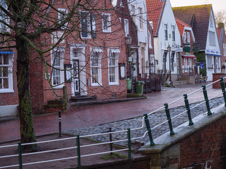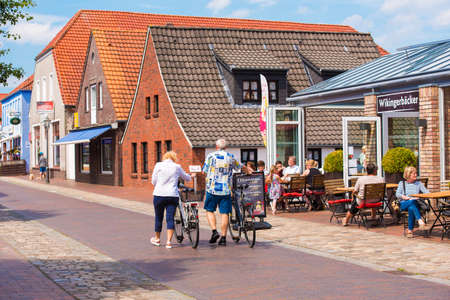 HOOKSIEL, GERMANY - JUNE 11, 2017: View of the buildings and the street cafe