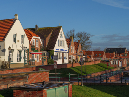 Evening view of the fishermens village Greetsiel, Lower Saxony, Germany