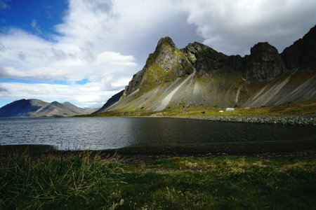 The mountains of Hornafjordur in the south Icelandic countryside landscape
