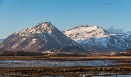 Icelandic Landscape during Sunrise Golden Hour near Reykjavik Ri