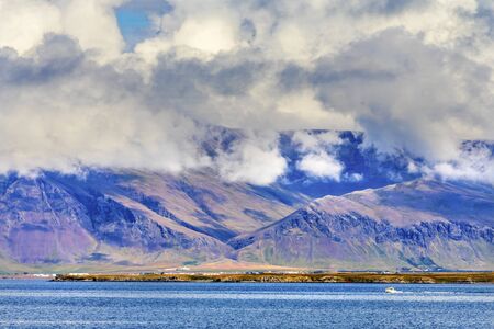 Landscape with Mount Esja and Atlantic ocean in Reykjavik, Iceland.