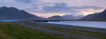 Mountains, sky and sea expanses of iceland in dusk winter season