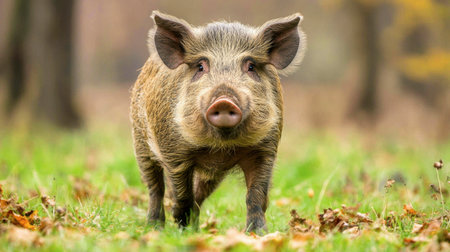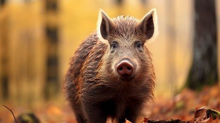 Wild boar walks in the autumn forest. High quality photo