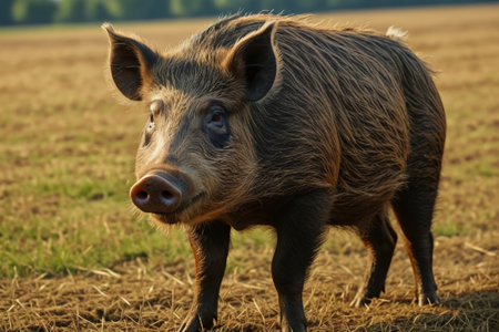 Close up of a wild boar in a field