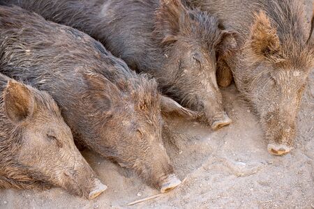Four sleeping in the sand wild boar in the park or farm
