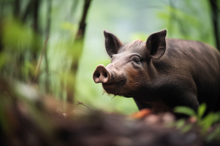 wild boar in a dense forest underbrush