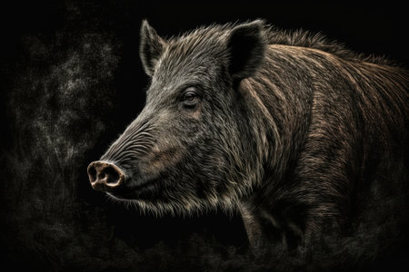wild boar on a black background. Generative AI
