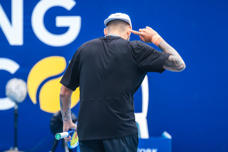 A players shoes on a tennis court, showing the person stretching and warming up before a game, A player stretching and warming up before a game