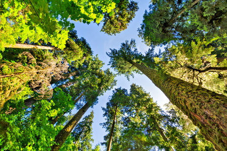 Sunrays filtering thru the forest foliage in a Vancouver park, British Columbia, Canada.