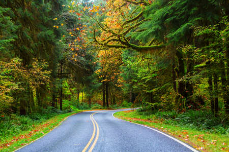 Autumn season in Hoh Rainforest, Olympic National Park, WA, USA. Beautiful unusual natural landscapes