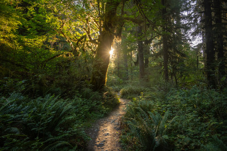 Small Sunburst Highlights Trail In Hoh Rainforest in Olympic National Park