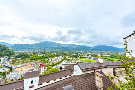 Salzburg, Austria - 10/11/2014: view of the city and the Salzach river from the highest point of the city in the Hohensalzburg fortress.