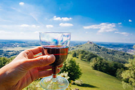 Panoramic view of the vineyards in front of the historic city of Badenweiler, in Baden-Wuertemberg, South Germany