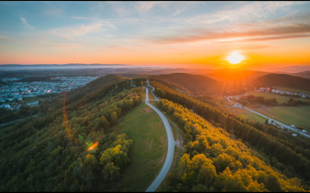 high angle view around a hill named Einkorn near Schwaebisch Hall in the evening at autumn time