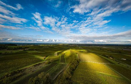 vineyards landscape on the hill from top with drone, dji