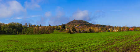 View from the top of Oblik hill. Autumn scenery in Central Bohemian Highlands, Czech Republic