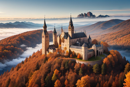 Medieval architecture in majestically overlooking a stunning autumn landscape