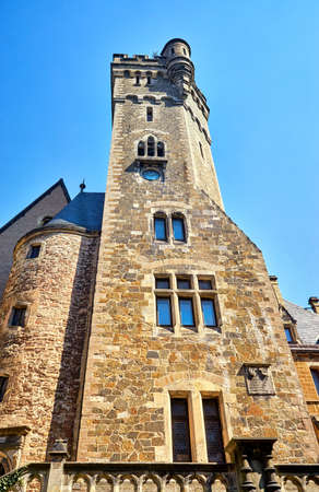 Tower with old windows of the Wernigerode castle. Germany