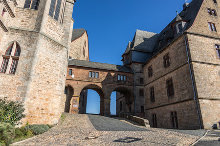 famous castle building on the highest hill in Marburg in Hesse