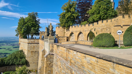 HOHENZOLLERN, GERMANY - AUGUST 31, 2019: Hohenzollern family members statues at Hohenzollern Castle in the state of Baden-Wuerttemberg, Germany