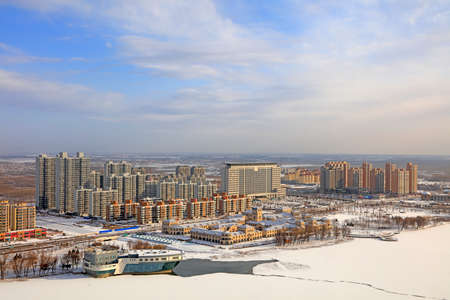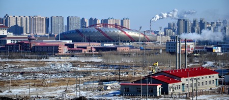 Hegang city,China -13 FEB 2018:China north part small city Hegang skyline