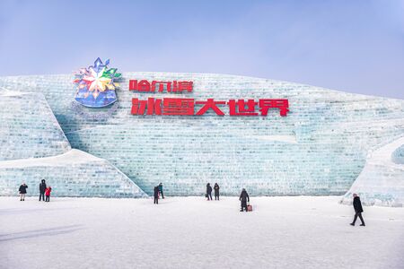 HARBIN, CHINA - JAN 15, 2020: Harbin International Ice and Snow Sculpture Festival is an annual winter festival that takes place in Harbin. It is the world largest ice and snow festival.