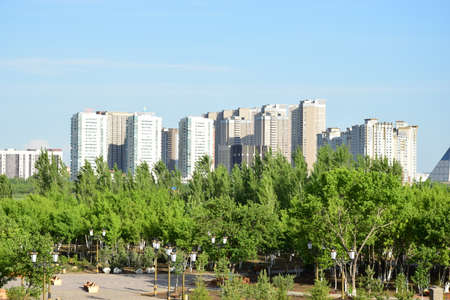ASTANA/NUR-SULTAN, KAZAKHSTAN - JUNE 22, 2018: The Ritz-Carlton Hotel and the Beijing Palace Soluxe Hotel.