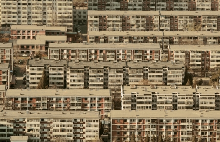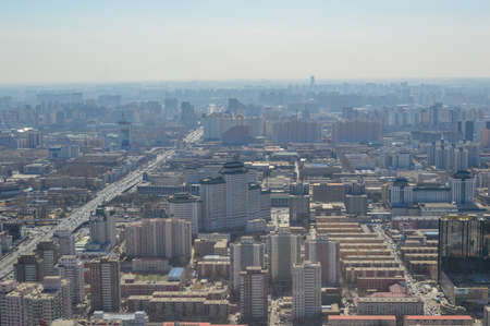 Beijing / China - March 1, 2014: Aerial view of downtown Beijing, view from the Central Radio and TV Tower in Beijing