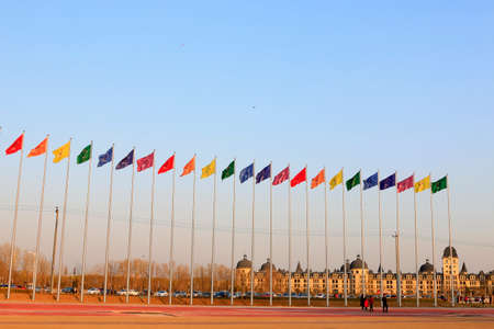 Tangshan City - March 26, 2016: Flagpole of the 2016 Tangshan World Horticultural Exposition gate, Tangshan City, Hebei, China