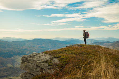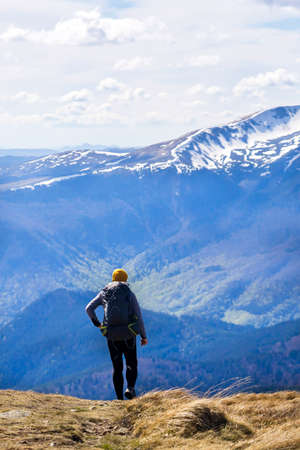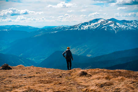 Man on the top of the mountain range of Carpathians mountains