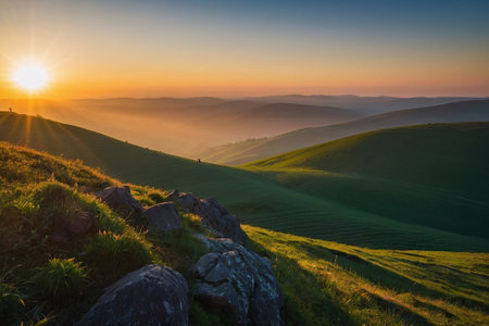 Beautiful sunset over the rolling hills in the Carpathian mountains