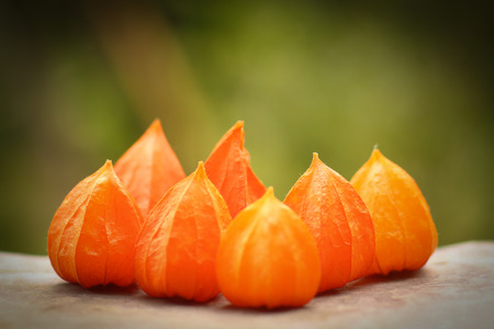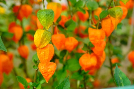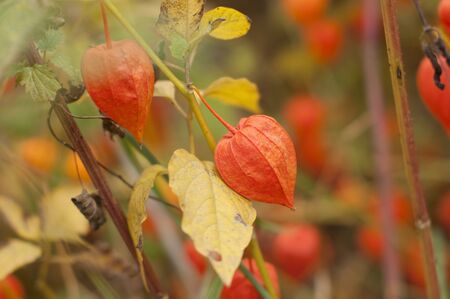 Autumn photo of orange physalisis in the garden