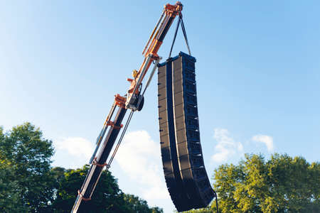 the stove is loaded onto a large blue car crane and prepared for operation. The largest truck crane for solving complex tasks