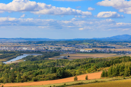 Beautiful rural scenery at summer day in Furano Township, Hokkaido, Japan.