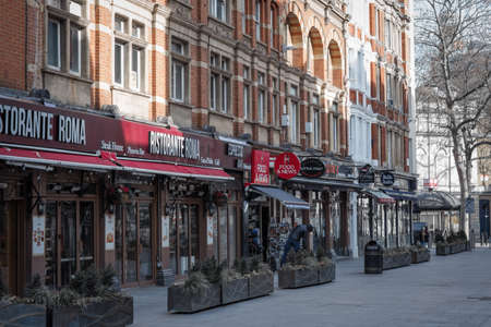 London, UK - 23 February, 2021: Strand in the City of Westminster, Central London. Empty streets City of London during national lockdown. Covid rest